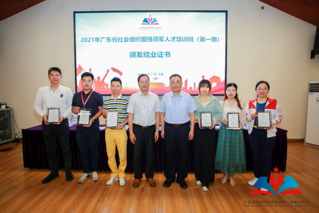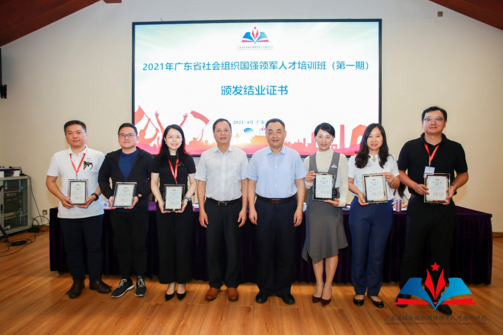 2021年4月23日上午,为期五天的广东省社会组织国强领军人才培训班(第一期)圆满完成学习任务,在英德市鱼咀村举行了结业仪式。广东省社会组织总会会长王长胜、广东省国强公益基金会副理事长兼秘书长罗劲荣出席结业仪式并作讲话,第一期培训班全体学员参加了结业仪式,结业仪式由广东省社会组织总会常务副会长兼秘书长郭洁莹主持。