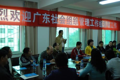 近期,广东省民间组织管理局谢兆群副调研员、省民间组织管理局综合处科长、广东省民间组织总会常务副秘书长李建辉同志带领广东省深圳警察基金会、深圳报关协会等一行22个单位代表,到宁夏回族自治区民政厅民间组织管理局进行考察学习,宁夏区民政厅蒋志平巡视员、民间组织管理局王金宝局长,马玲副局长、宁夏水利协会陈光华副会长等领导分别就宁夏区社会组织发展概况及作用发挥情况、机构、人员、编制、经费、管理机制体制改革与创新的主要举措,行业协会、农村专业经济委员会、社区民间组织及基金会自身建设等方面作了很好的经验介绍。广东代表团负责人就广东省社会组织发展概况,特别是广东省基金会的自身建设的情况等,向宁夏区同行作了详细的介绍。双方还就如何提高社会组织自身能力等问题进行了热烈的交流。通过考察学习,交流情况,双方代表都感到受益匪浅。