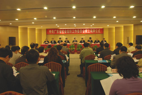 成立广东省社会组织党工委,进一步加强社会组织党建工作,这在全国尚属首创,是贯彻落实党的十七大提出的全面推进党的建设伟大工程、全面建设小康社会的又一创新举措。在揭牌仪式上,省委组织部领导宣读了关于成立中共广东省社会组织工作委员会的批复,叶秀仁副厅长宣读了广东省社会组织党工委成员名单,国家民间组织管理局孙伟林局长、省民政厅刘洪厅长,省民政厅副厅长、广东省社会组织党工委书记王长胜同志作了讲话。
