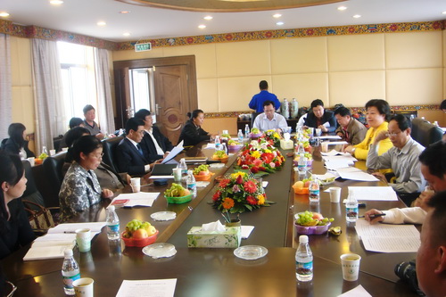 广东社会组织考察团成员在认真听取西藏民间组织管理局领导作社会组织工作经验介绍