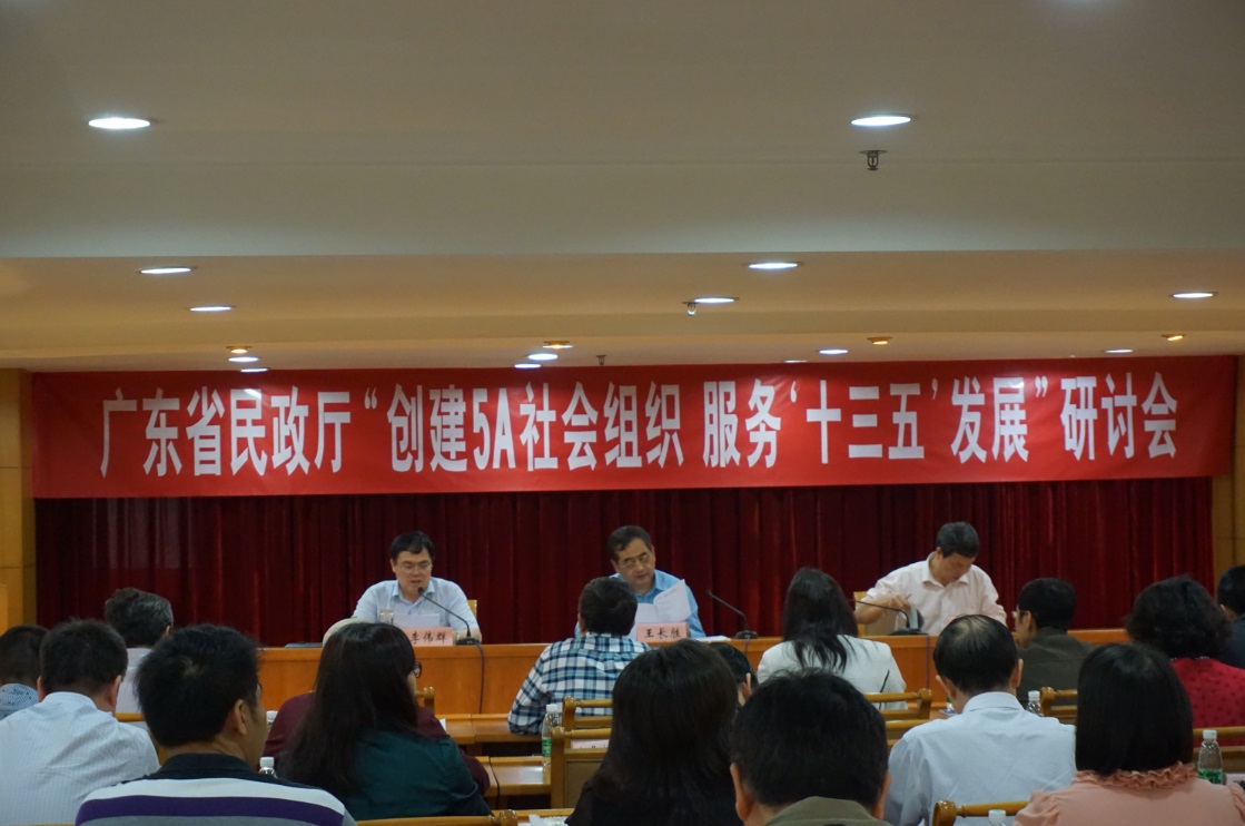 4月20日,广东省民政厅在广州召开“创建5A社会组织,服务十三五发展”社会组织评估工作研讨会,总结近年来全省性社会组织评估工作经验,部署下一步工作计划。省民政厅副厅长王长胜出席会议并作了重要讲话,省社会组织管理局局长刘平波、副局长李伟群参加会议。有关5A 等级的社会组织代表、评估专家代表、业务主管单位代表、第三方机构参加研讨会。会议由李伟群主持。