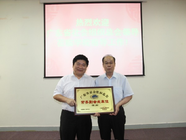 在座谈会中,方向文执行会长为常务副会长单位广东工商职业技术学院颁发总会第三届理事会牌匾和证书。