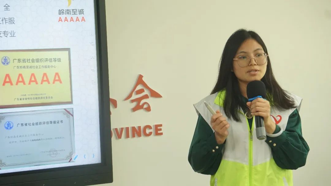 广东岭南至诚社会工作服务中心项目主任刘小瑶分享了岭南至诚社工防疫抗疫的心得体会