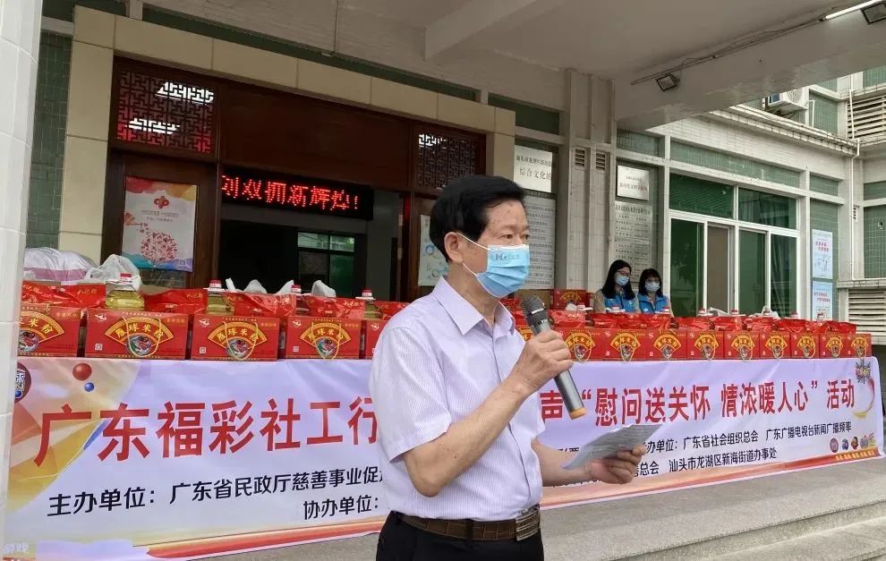 5月16日下午,由广东省民政厅慈善事业促进和社会工作处、广东省福利彩票发行中心主办,广东省社会组织总会、广东广播电视台新闻广播频率承办,广东省社会组织评估中心、汕头市龙湖区慈善总会、新海街道办事处协办的“2022年广东福彩社工行动 大爱有声 慰问送关怀 情浓暖人心活动”在汕头市龙湖区新海街道顺利举办。