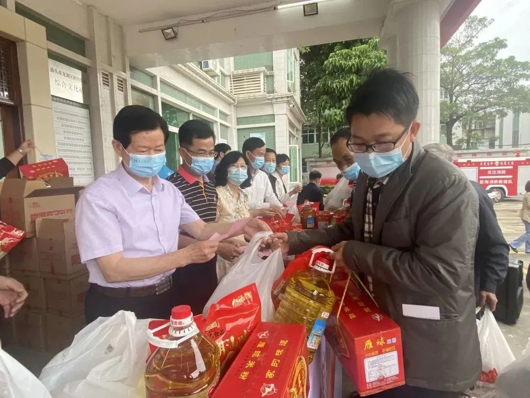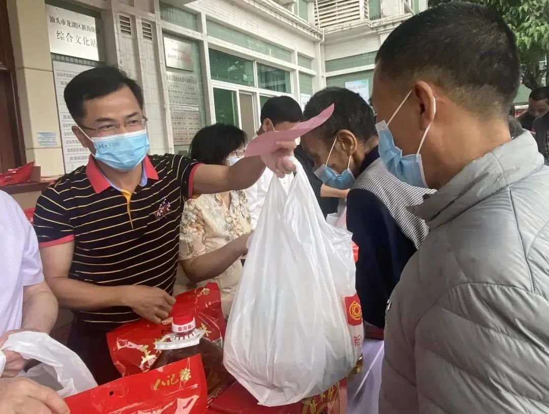 活动现场为部分到场的新海街道困难群众送上慰问物资。此次活动,共购买由金龙鱼食用油、米粉、粽子礼包、粉丝等组成的慰问礼包共计268份,通过现场领取、入户派送的形式将慰问物资发放给汕头市龙湖区新海街道的268户民政服务对象及家庭。
