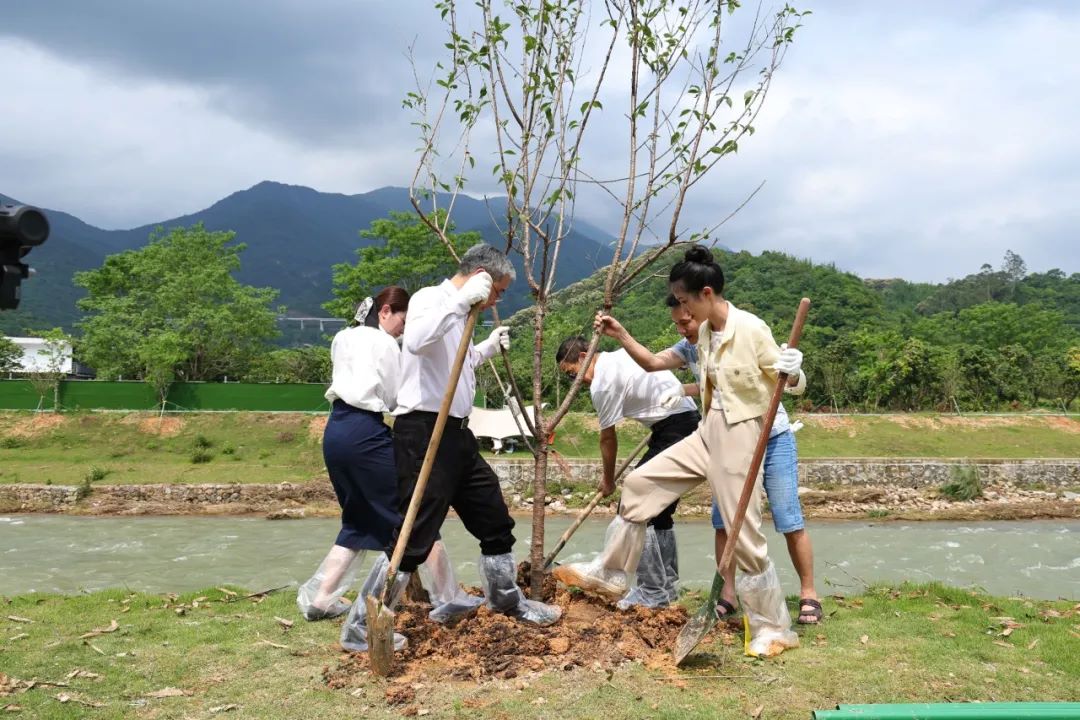 活动唱响“我为广东种棵树”的主旋律,在专业人员的指导下,活动现场所有人员分工明确、互相协作,挥锹铲土、扶苗固正、培土围堰、浇水灌溉,一道道工序井然有序,共栽种数十株广东樱树苗。植树完毕,一棵棵树苗错落有致、生机盎然,为美丽乡村增添了一抹新绿。大家通过植树活动和现场互动深入了解生态环保的深远意义,用实际行动争当生态文明的传播者、实践者、推动者,形成人人参与、共建绿色生态的美好局面。