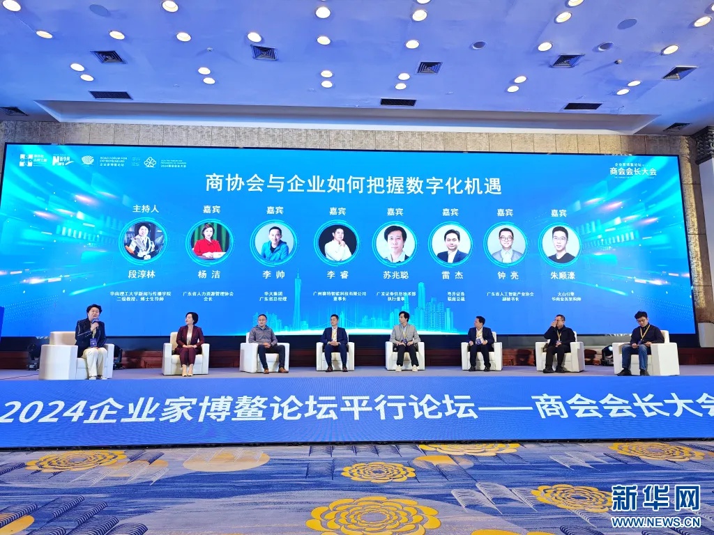 圆桌论坛环节,华南理工大学新闻与传播学院教授、博士生导师段淳林作为主持人与7位来自不同领域的嘉宾,围绕商协会与企业如何把握数字化机遇的主题进行深入的探讨和交流。