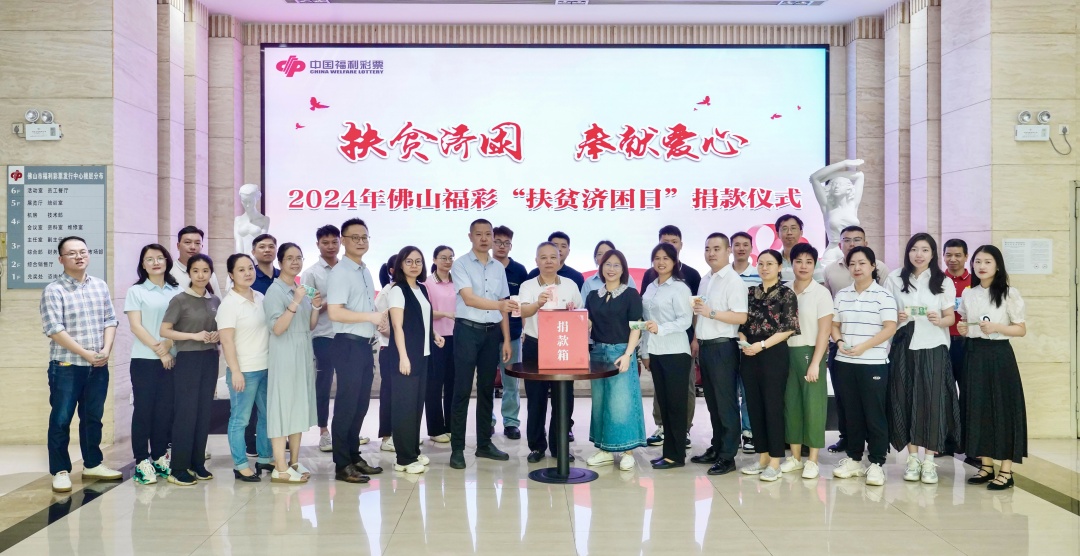 2024年广东“扶贫济困日”活动主题是“巩固脱贫成果,助力乡村振兴”。为深入实施“百县千镇万村高质量发展工程”,助力乡村振兴工作,6月28日,佛山福彩组织全体工作人员参加“扶贫济困日”捐款,以实际行动践行社会责任,奉献爱心,传递温暖。这是佛山福彩连续15年开展广东“扶贫济困日”捐款活动。