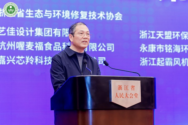 浙江省委社会工作部行业协会商会发展处处长徐航出席会议并致辞。他指出,习近平总书记高度重视生态文明建设,为我们指明了绿色发展方向。浙江作为“绿水青山就是金山银山”理念的诞生地,始终把生态环境保护摆在突出位置,坚定不移走生态优先、绿色发展之路,在生态环境修复领域取得了显著成效。行业协会商会在生态环境修复工作中发挥着独特而重要的桥梁纽带、行业自律和服务支撑作用,在深化品牌创建、推动产业发展、强化标准制定、促进技术创新、加强行业交流等方面取得了不少成绩。希望在今后工作中,进一步加强科技创新引领,强化人才队伍建设,深化产业融合发展,积极参与社会治理,携手共进、砥砺前行,为推动浙江省生态环境修复高质量发展,建设美丽浙江、实现共同富裕而努力奋斗!