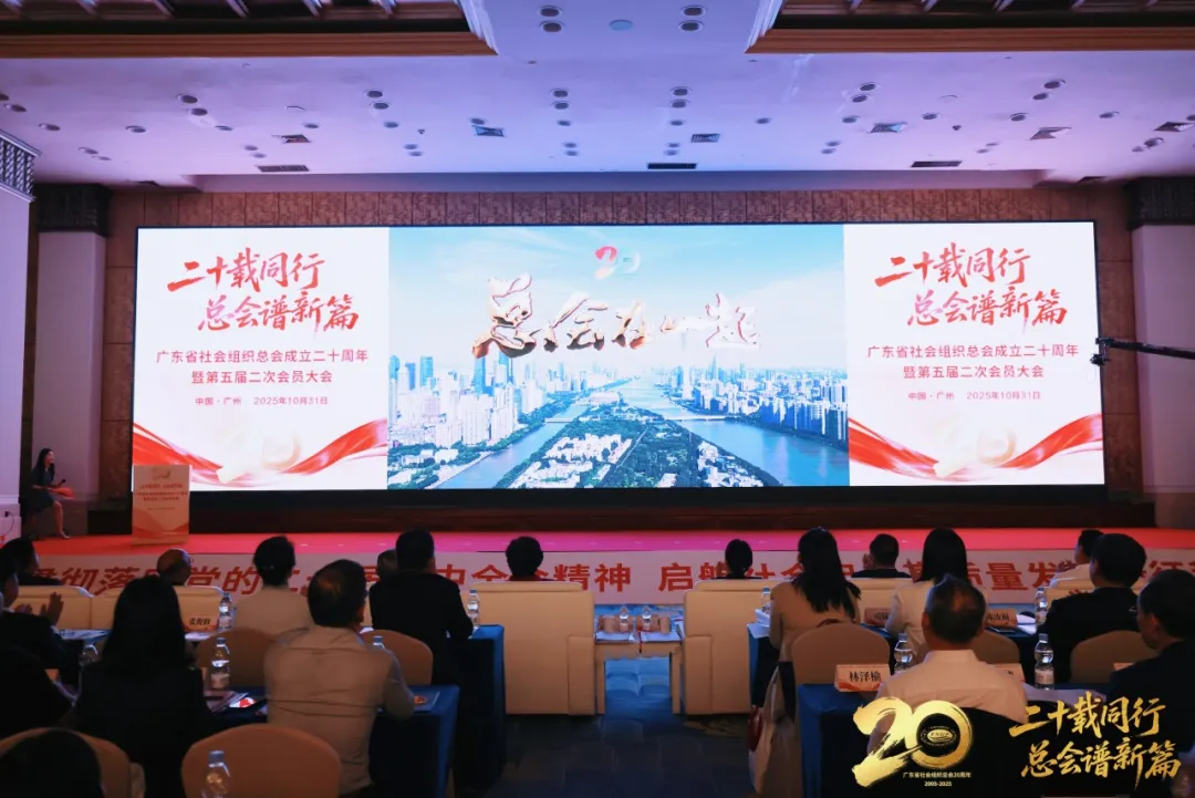 今年是广东省社会组织总会(以下简称“总会”)成立20周年。为回顾总结20年发展历程,启航社会组织高质量发展新征程,2025年10月31日,总会在广州举行了隆重简朴的成立20周年系列活动。中国社会组织促进会会长杨岳,民政部社会组织管理局原局长孙伟林,中央政策研究室社会研究局原局长纪伟昕,中国社会报社原党委副书记、总编辑秦艳,广东省民政厅厅长张晨等莅临活动指导。
